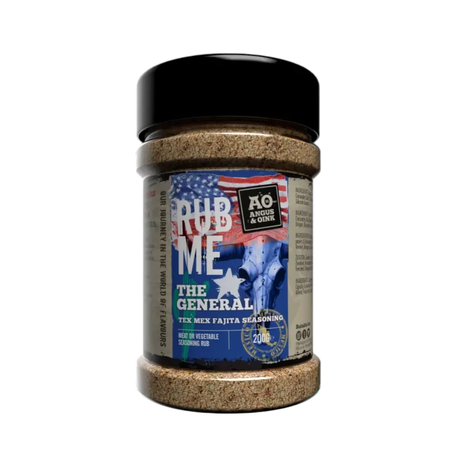 Angus & Oink The General Tex Mex egy gazdag, karakteres fűszerkeverék, amely a tex-mex konyha jellegzetes, tüzes ízvilágát hozza el a tányérodra. A paprika, chili, kömény, fokhagyma, hagyma, koriander és fűszeres aromák tökéletes kombinációja teszi ezt a rubot ideálissá tacohoz, burritóhoz, enchiladához és más mexikói ihletésű ételekhez.