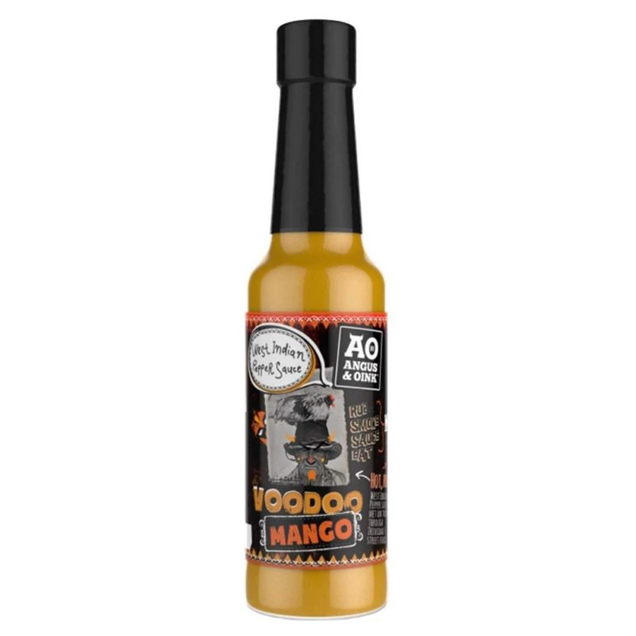 Angus & Oink Voodoo Mango Hot BBQ Sauce – Egy igazán különleges nyugat-indiai paprika szósz, amely egyszerre édes és pimasz ízélményt nyújt. A mangó természetes édessége harmonikusan egészíti ki a kongói paprika intenzív, csípős erejét. A szósz gyönyörű sárga színét a mustárpor és kurkuma adják.