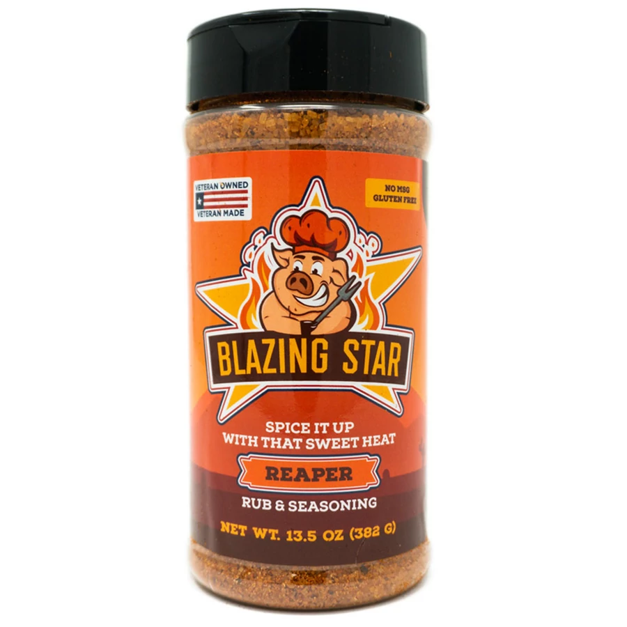 Blazing Star Reaper Rub egy különleges, prémium minőségű fűszerkeverék, amely a Carolina Reaper paprika izgalmas csípősségét ötvözi gazdag, ízletes aromákkal.