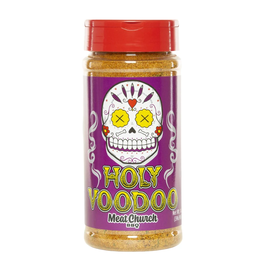 Meat Church Holy Voodoo egy kajszi és texasi jalapeño ihlette BBQ fűszerkeverék, amely savanyúbb, fűszeresebb ízvilágot kínál, mint sok más édes alapú BBQ rub.