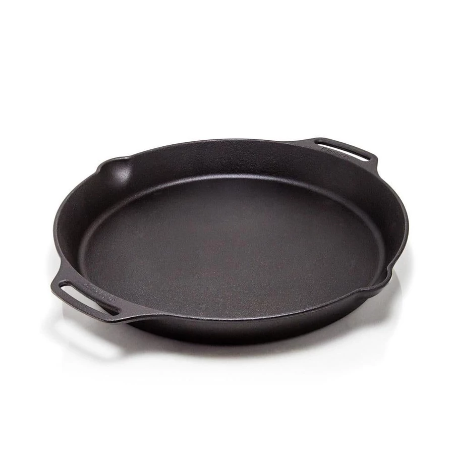 A Petromax FP40H-T egy 40 cm átmérőjű, prémium öntöttvas serpenyő, amely tökéletes választás otthoni főzéshez és szabadtéri sütéshez egyaránt. A két fogantyú megkönnyíti a kezelését és a szállítást, míg a kiváló hőeloszlás és hosszú élettartam garantálja a tökéletes eredményt minden ételnél. A serpenyő előkezelt felületének köszönhetően azonnal használatra kész, tisztításához meleg víz és kefe ajánlott, mosogatószer használata nem javasolt. Időnkénti ápolás semleges növényi olajjal vagy Petromax pasztával a hosszú élettartamot biztosítja.